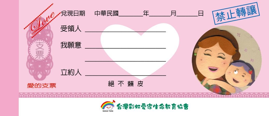 所以,我們鼓勵孩子寫下:愛的支票;並且用心承諾,兌現服務的行動。