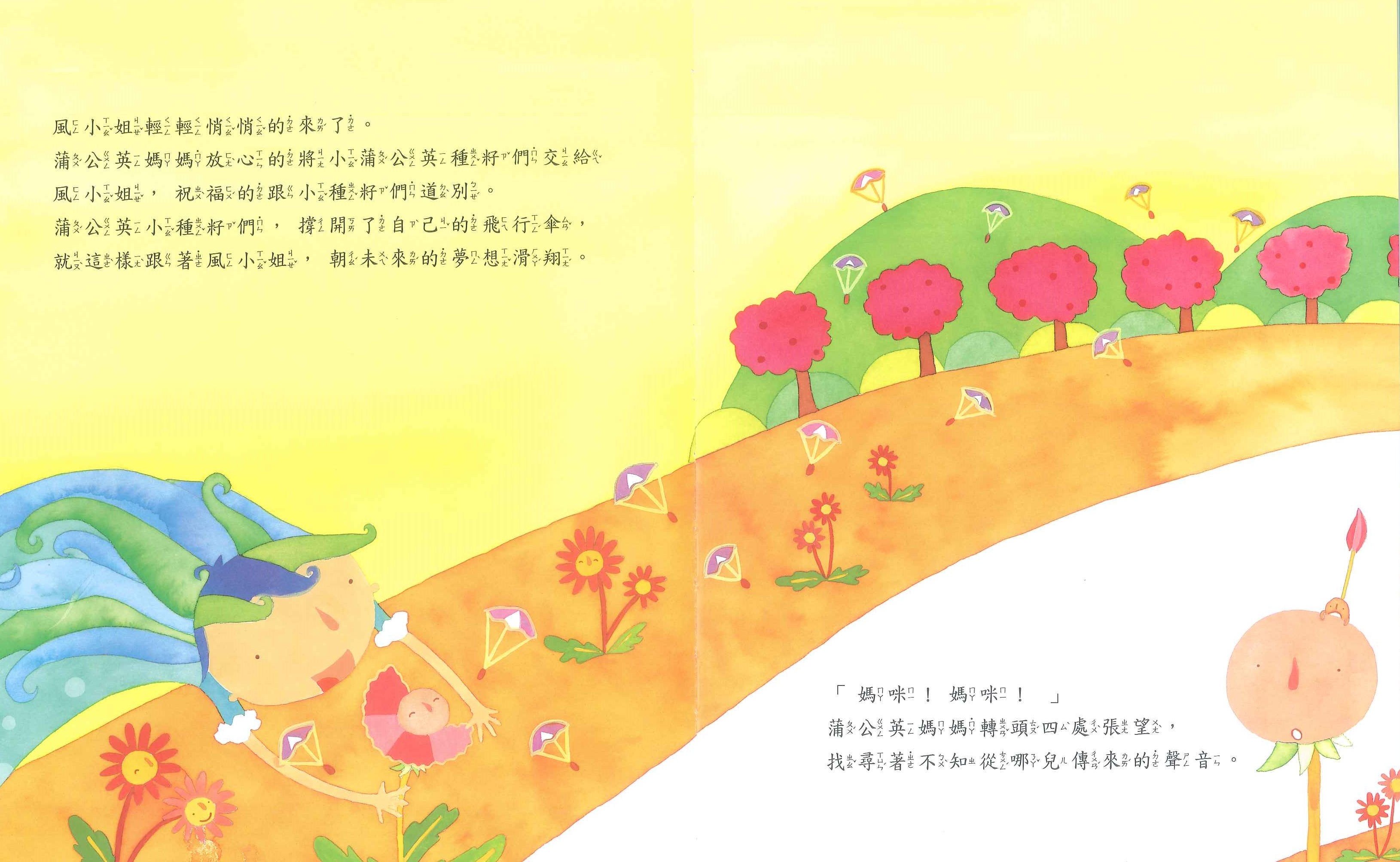 蒲公英種籽小寶不肯飛上天,他怕高,怕離開媽媽,他要如何面對自己的害怕呢?