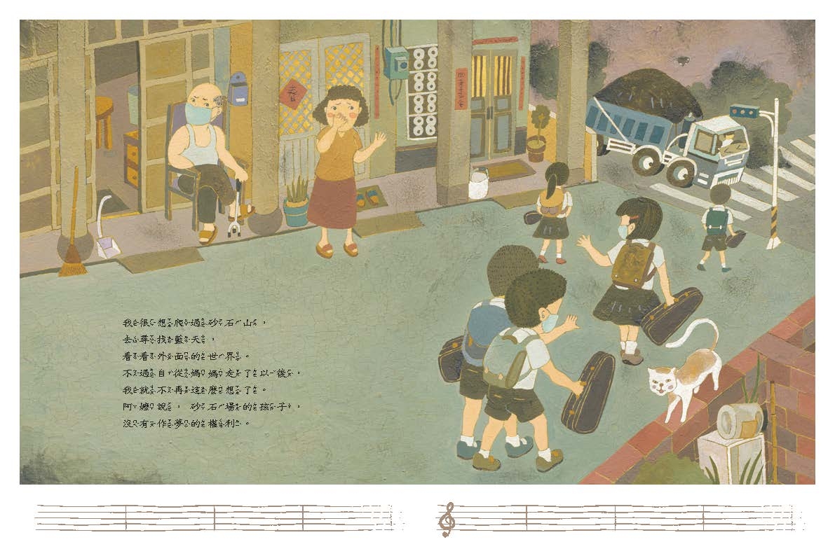 學校外,有高高的砂石山,轟隆隆的砂石車,學校內,每天響起悠揚的琴聲,穿過雲霄……