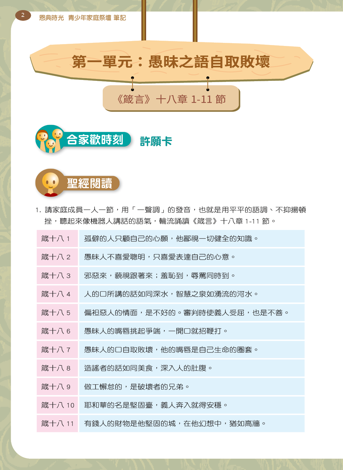《恩典時光~青少年家庭祭壇》提供您一套完整、有效、可持續的方案,降低了父母帶領家庭祭壇的門檻,讓您能: