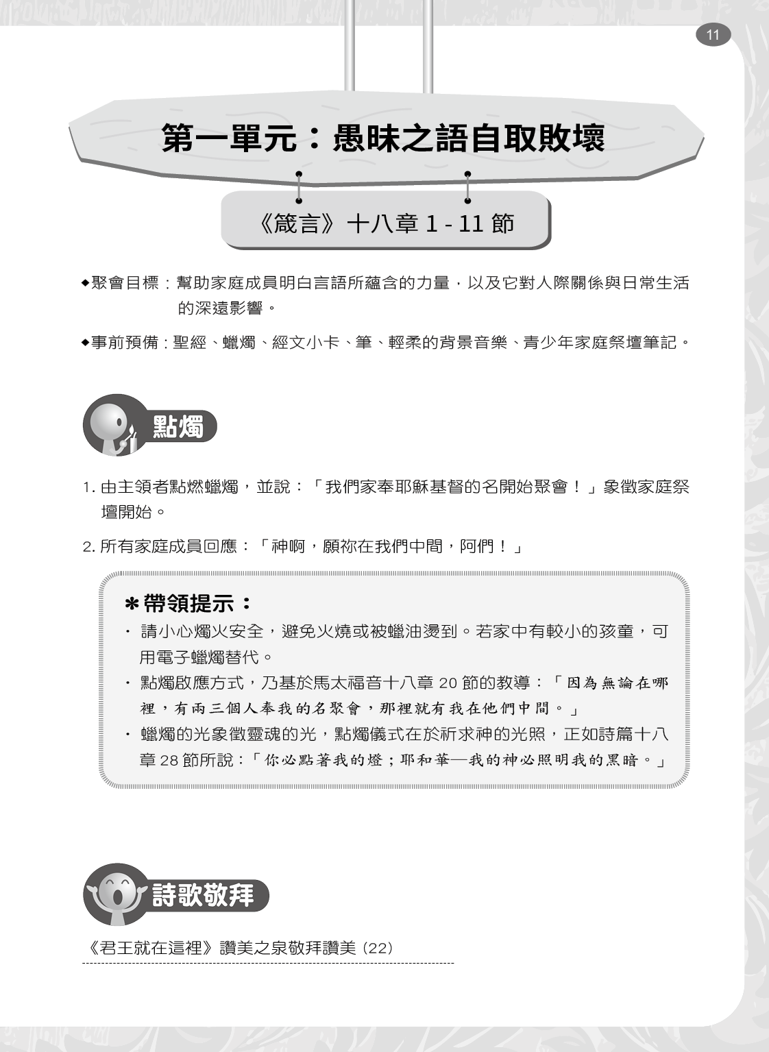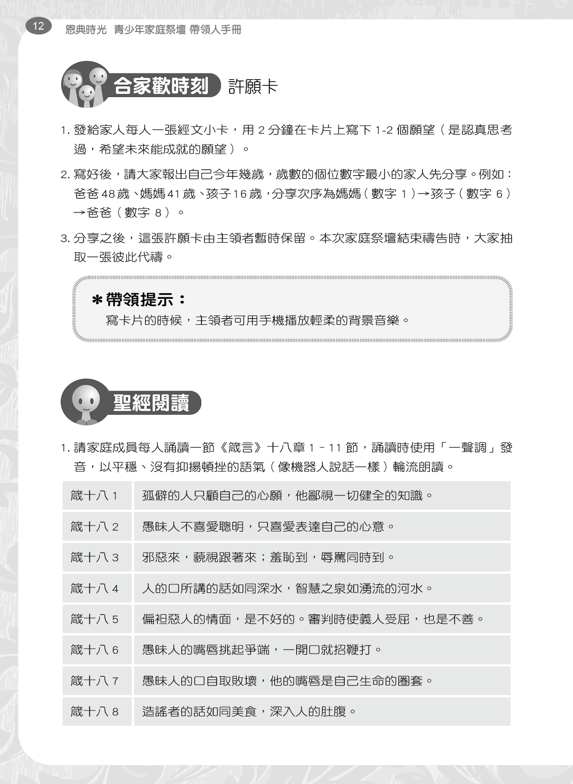 《恩典時光~青少年家庭祭壇》提供您一套完整、有效、可持續的方案,降低了父母帶領家庭祭壇的門檻,讓您能: