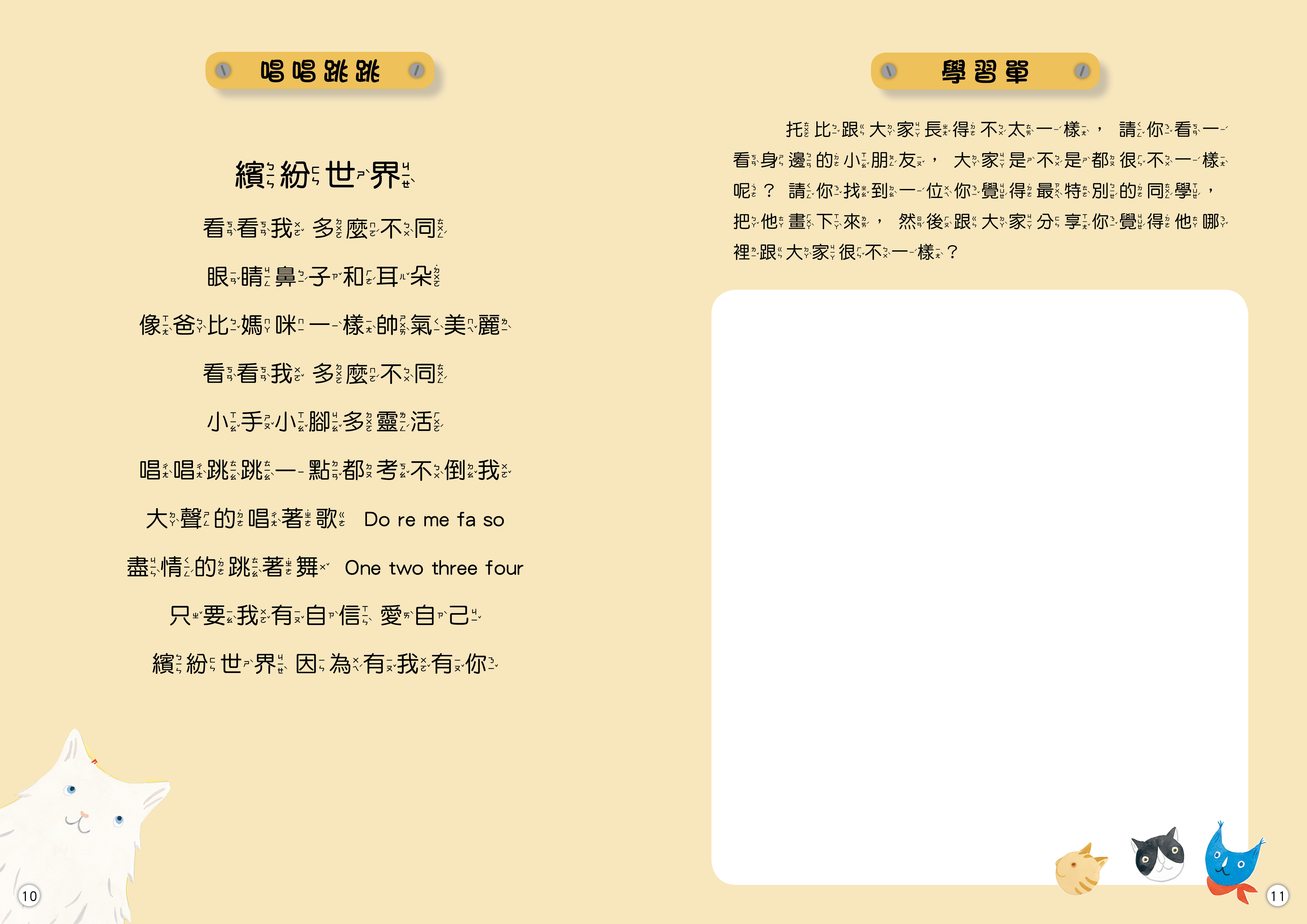 整本全彩,內容包含歌詞、金句、以及豐富的學習單。