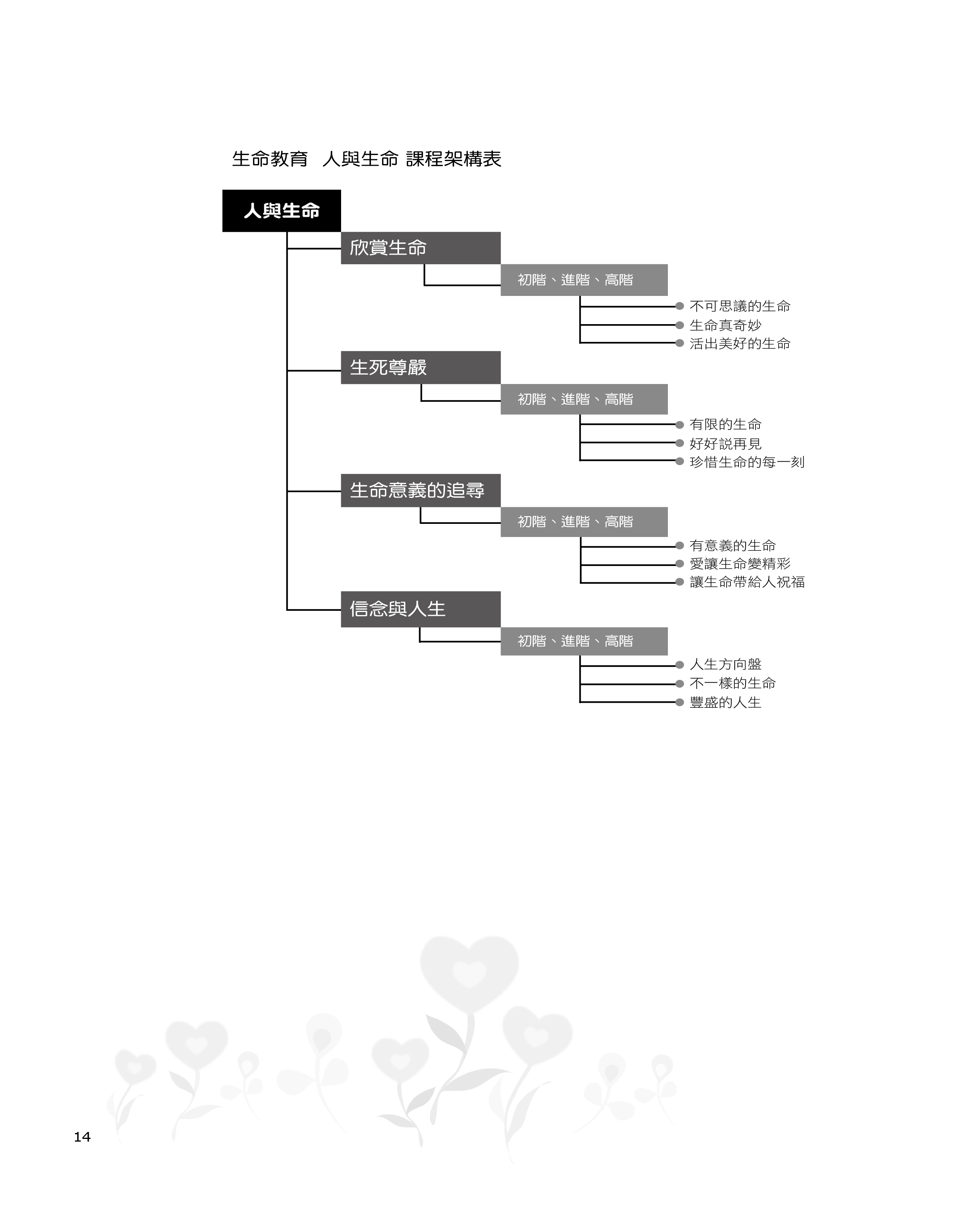 而生命意義的尋找往往會追溯於生命源頭,所以「人與生命」也會引導學生探索人生的關係。