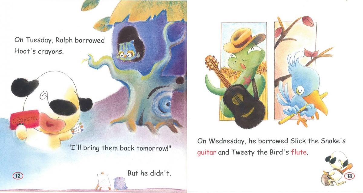小狗瑞夫向小動物們借了東西卻遲遲不還,他的朋友們覺得好生氣。