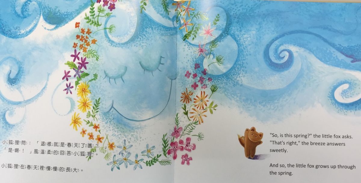 故事裡的狐狸媽媽面對好奇的小狐狸,總是耐心的帶著他一樣一樣去體會,一樣一樣去感覺。