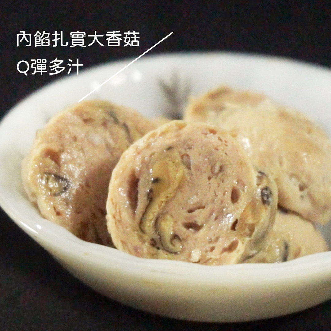 【成分表】 豬肉、香菇、豬脂、鹽、糖、結著劑(焦磷酸鈉、偏磷酸鉀、多磷酸鈉)