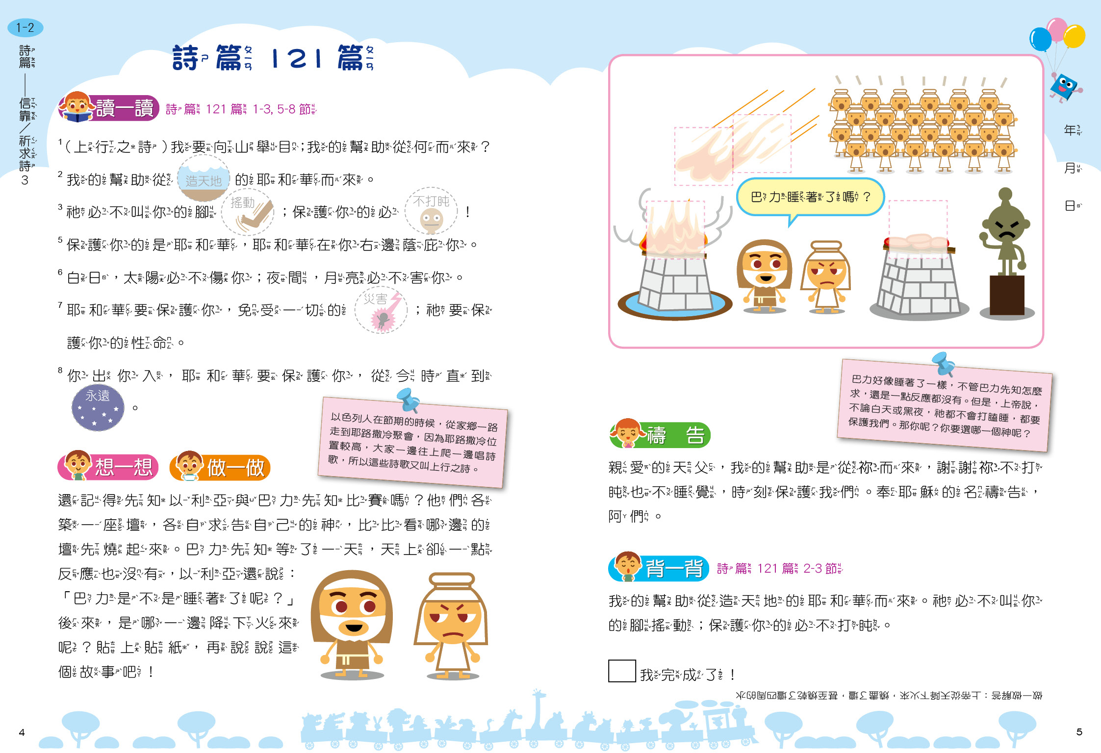 讀一讀:父母帶著孩子細讀一小段聖經,並在關鍵字貼上貼紙,增加印象。