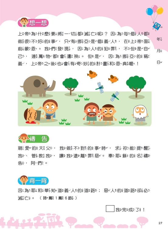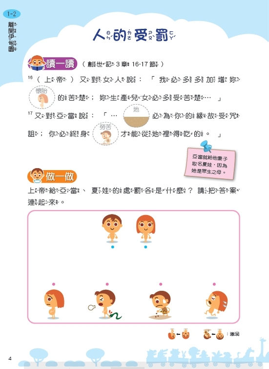 讀一讀:父母帶著孩子細讀一小段聖經,並在關鍵字貼上貼紙,增加印象。