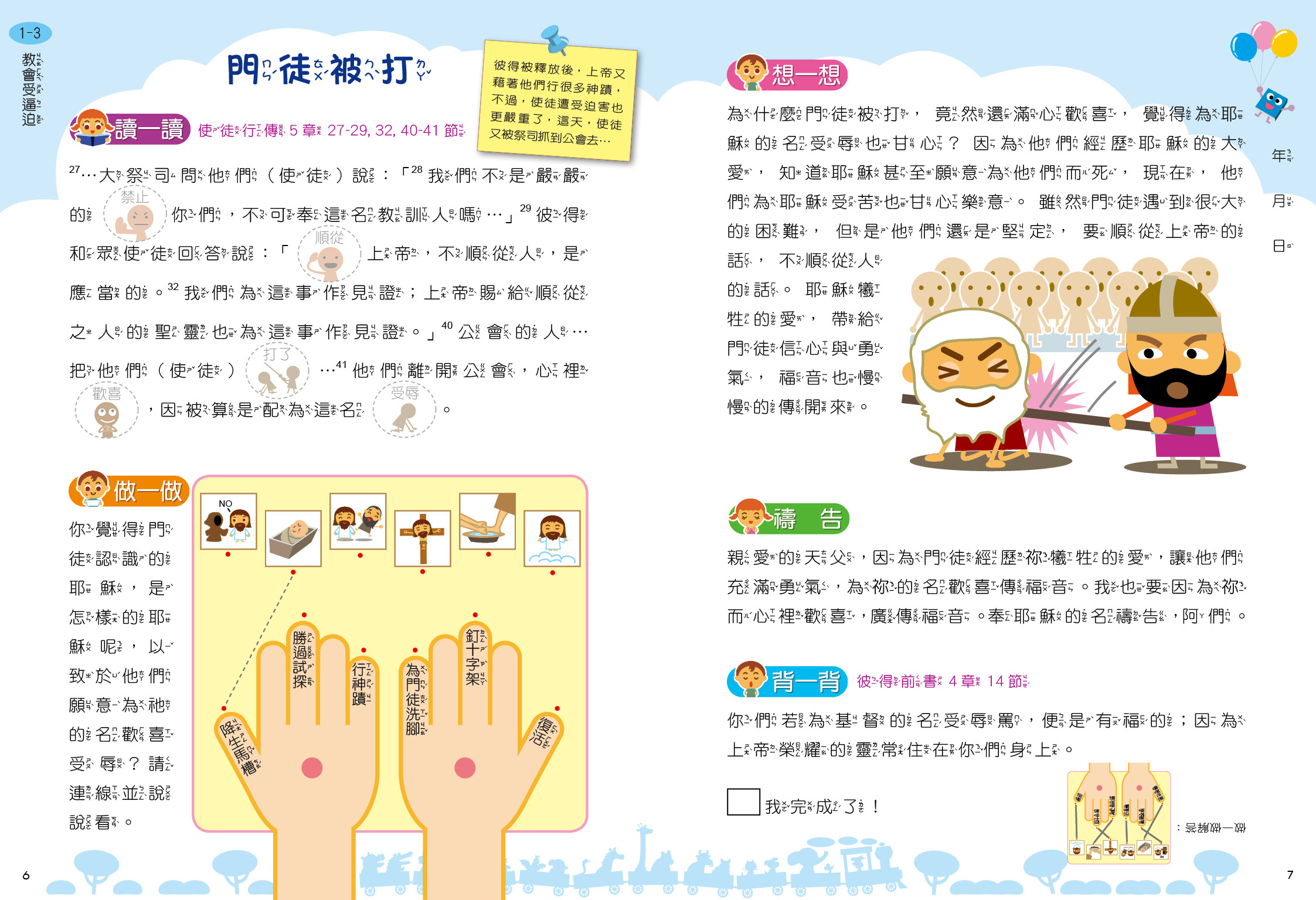 讀一讀:父母帶著孩子細讀一小段聖經,並在關鍵字貼上貼紙,增加印象。
