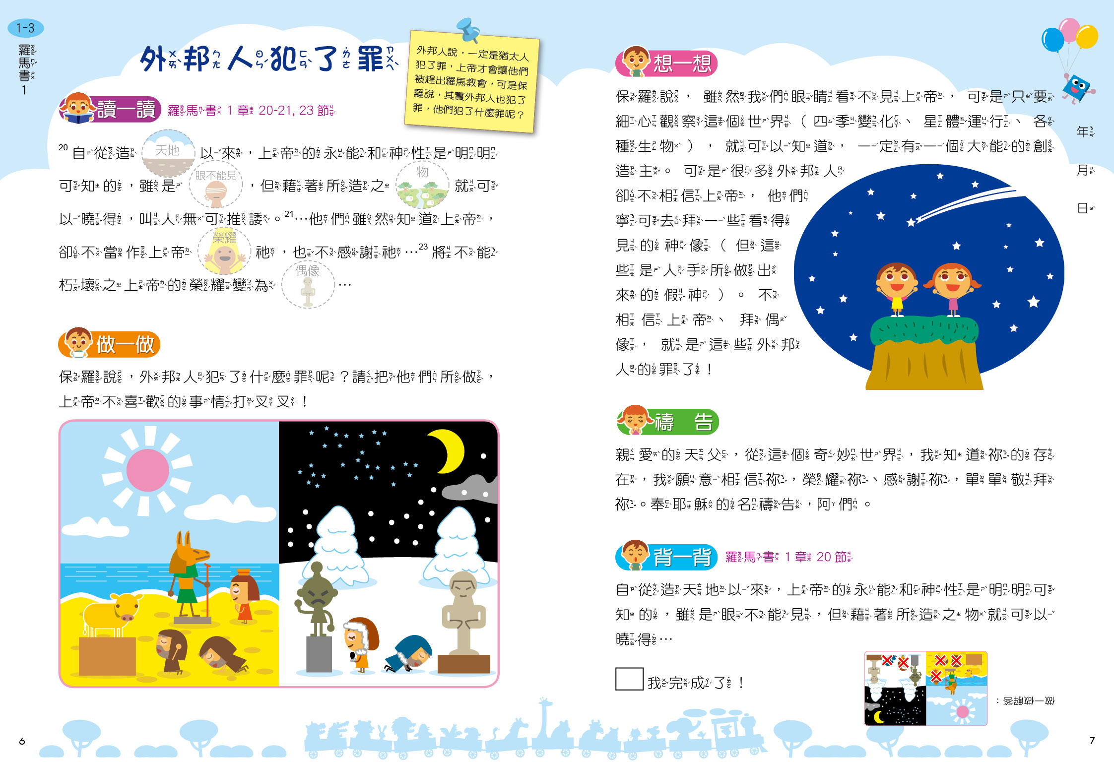 讀一讀:父母帶著孩子細讀一小段聖經,並在關鍵字貼上貼紙,增加印象。