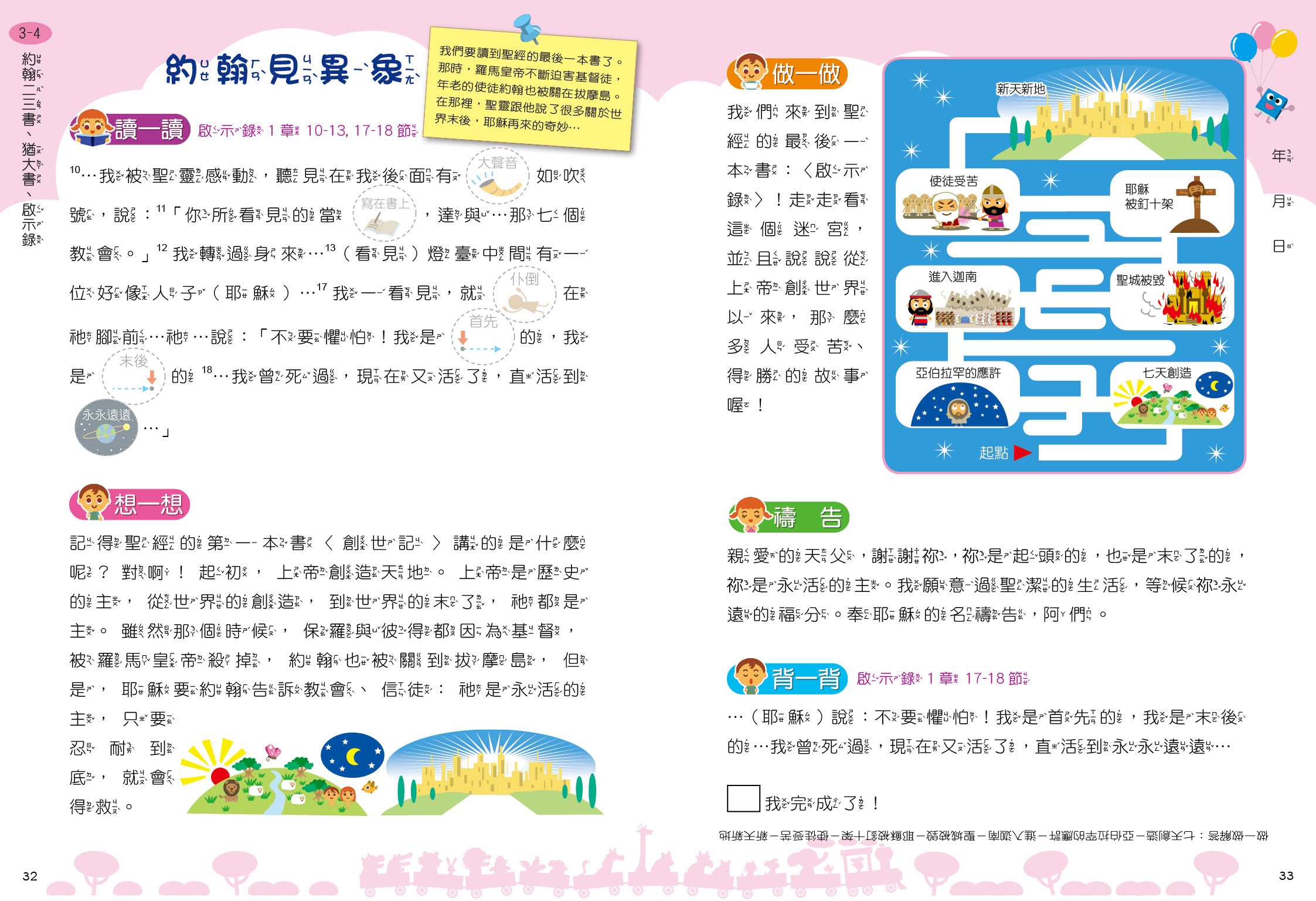 讀一讀:父母帶著孩子細讀一小段聖經,並在關鍵字貼上貼紙,增加印象。